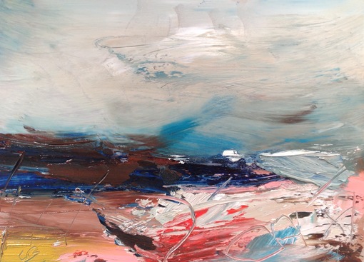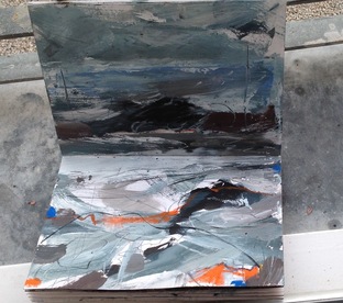By day three I was outside painting from the cottage looking down on Priest's Cove, inspired by soft breezes, sea, rocks and sky.