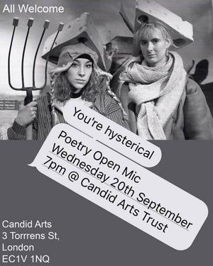 “You’re Hysterical” is a spoken word / poetry / performance night taking place on Wednesday 20th September in Candid Basement. We hope to encourage performers, listeners and friends to come together for an evening of expression and conversation.