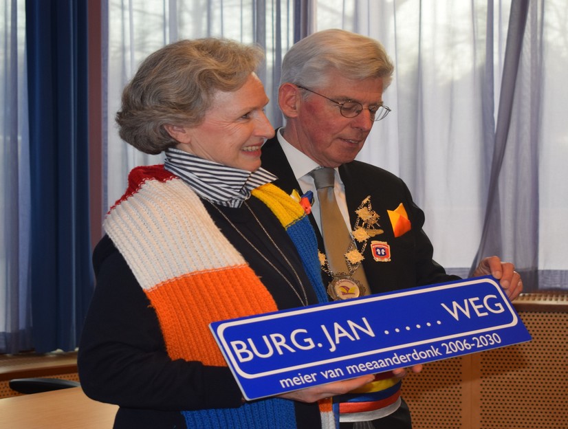 De komende dagen zal er zeker nog aandacht zijn voor dit afscheid! Op de bijeenkomst is aan Pommer ook een straatnaambordje overhandigd waarbij hij letterlijk ‘weg’ is.