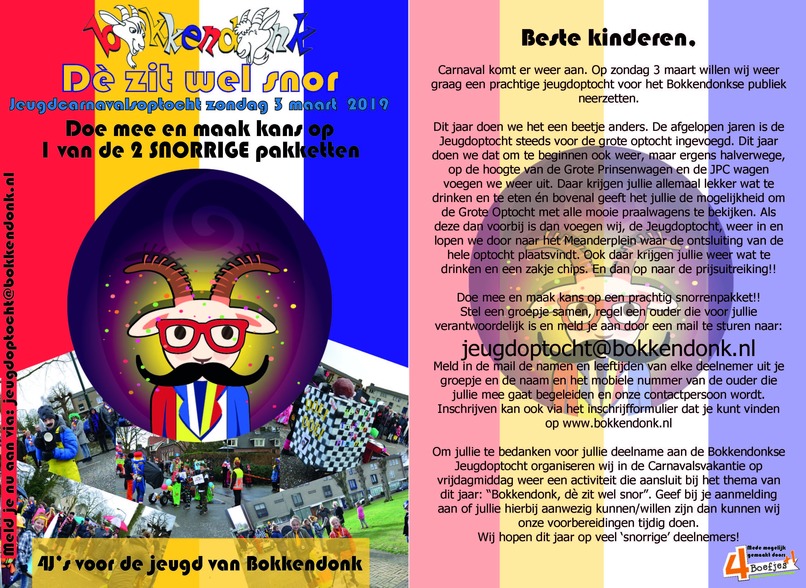 De Bokkendonker is bezorgd, de wagenbouwers bijna klaar, de loopgroepen en individuele deelnemers aan de optocht bezig met de laatste voorbereidingen, we kunnen zeker zeggen: Bokkendonk, dè zit wel snor!