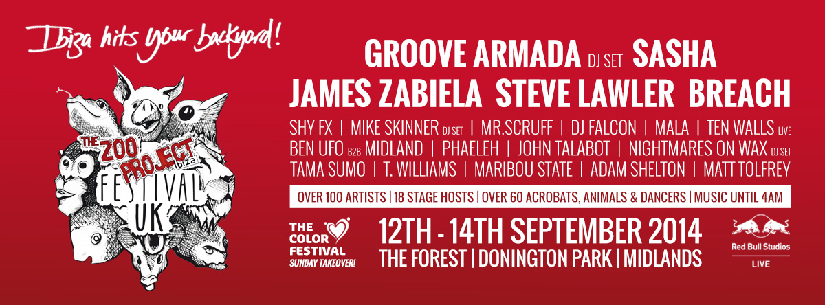 Last up we are very happy to be going back to the Zoo Project festival at Donnington Park for the 3rd year in the a row. We have always had a great time playing here and this time have invited Tama Sumo, Mr Beatnick and Youandewan. Also playing at the festival are John Talbot, Ben UFO, Mr Scruff, Groove Armada, Midland and Breach.
