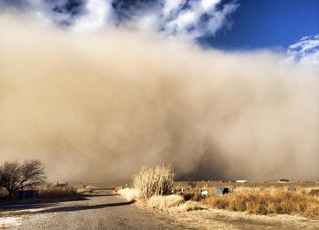 Recent dust storm at Boise City, Oklahoma, where drought is so severe and prolonged that the BBC likens the situation to the 1930s dust bowl. This could have been avoided had Oklahomans burned more natural gas.