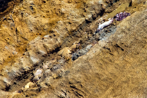 Waterkeeper wants to put a mass disposal plan into effect, and wants it to declare a state of emergency. On its website and YouTube, the organization has posted photos of dead piglets barely covered with earth and boxes overflowing with the bodies of young pigs, although it is unclear whether all were victims of the virus.