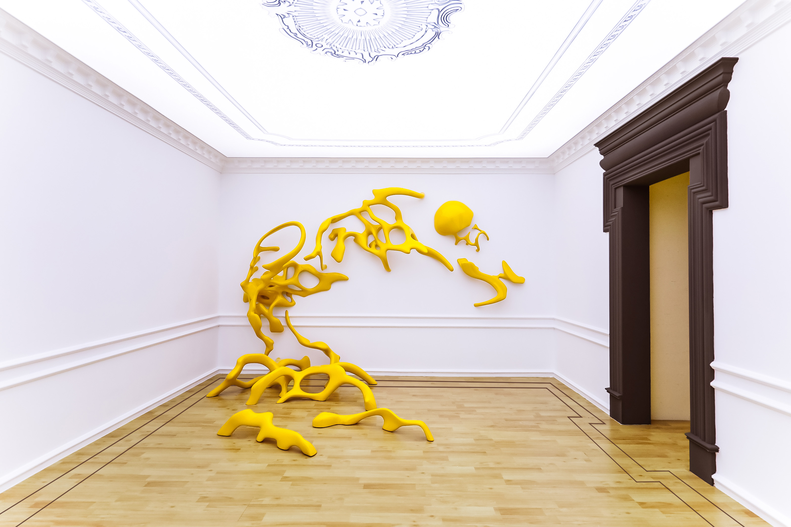 Installation with 3D printing, Fiberglass, Interior decoration (Plaster ornaments, Wood floor, Light film ceiling)